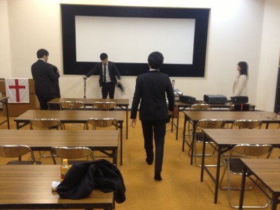 コンサート後の休憩中! 木原牧師が来ています。