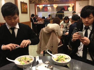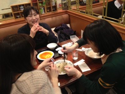 発見!自分のちゃんぽん食べ終わって、お姉さんのちゃんぽんに手を出す妹さん。