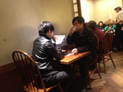隣のテーブルが空いたので皆で同じテーブルを囲みます。