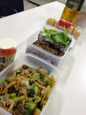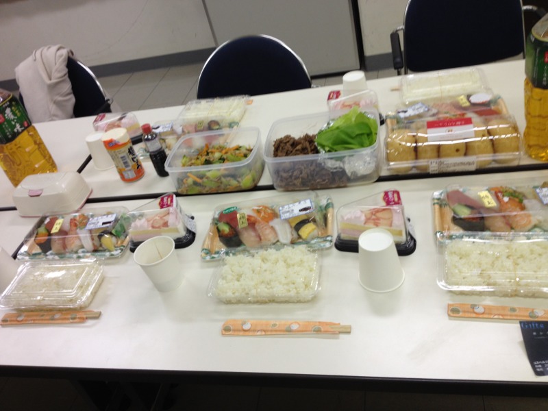 平良牧師が夕食を作って来てくださいました! 控室で夕食を頂きます!