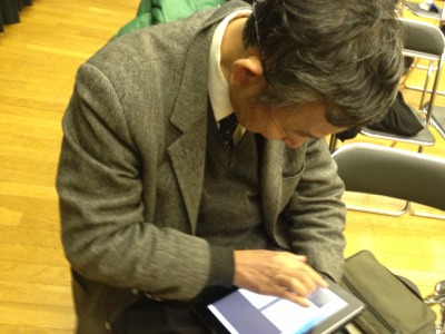 パウロ秋元牧師のiPad、音が出なくなったようで、サムエルが確認してます。