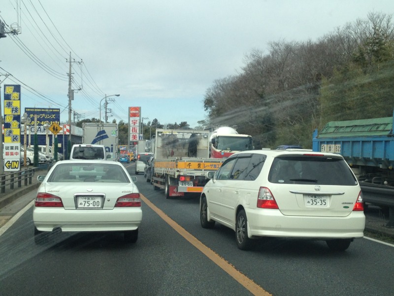 高速降りました!しかし渋滞です!感謝します!