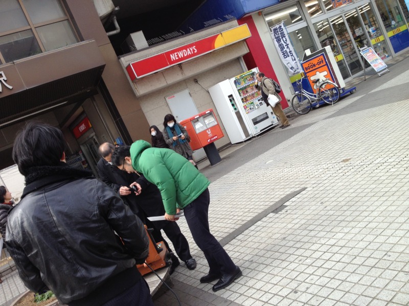 路上ライブを終え、片付けをしています。 3曲歌い、CDが2枚売れました。