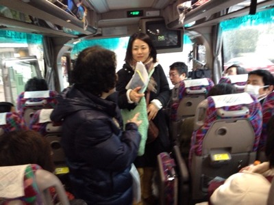 スタッフ堀内さんより、アナウンス中! 二号車バス組
