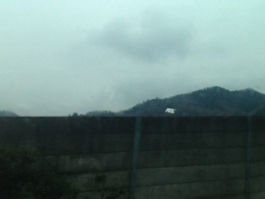 只今、相模原通過中! 何やら、山の中に大きな手紙発見! 不思議ですね(・_・; 二号車バス組