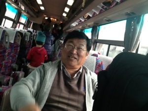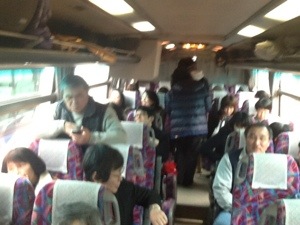 休憩が終わり、みんなバスに戻ってきました。 二号車バスリーダー永藤牧師から、携挙された人はいませんね! と…!(◎_◎;) 全員集まって出発します。 二号車バス組