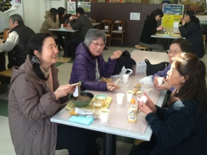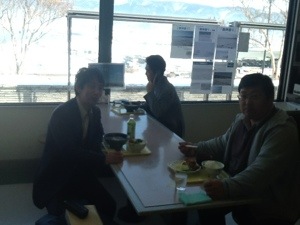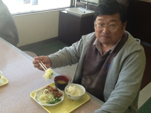 一緒に食事中の永藤牧師と小須田牧師! 永藤牧師は少なめの食事でした。 二号車バス組