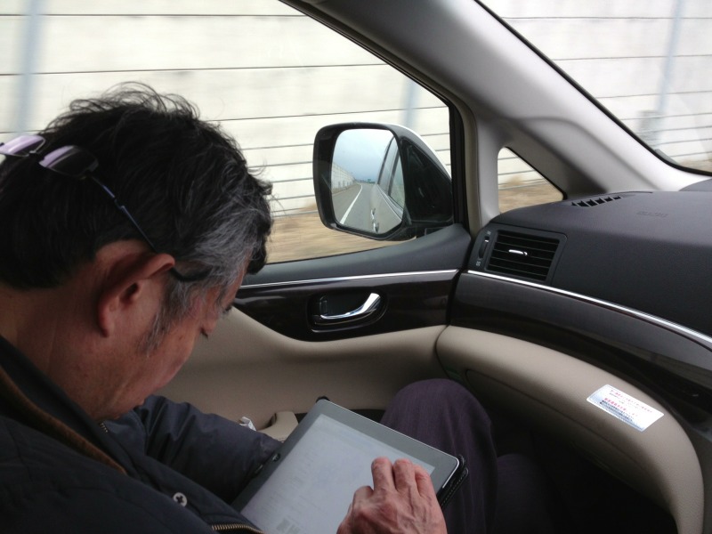 ホームページチェックする秋元牧師を今度は運転席側から!
