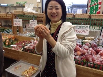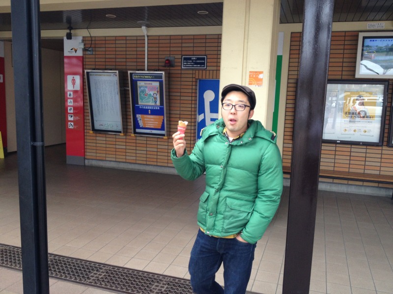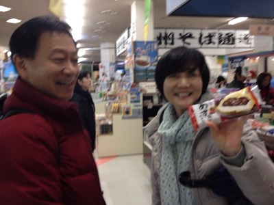 小豆入りアイスをチョイス、弓野牧師ご夫妻。 二号車バス
