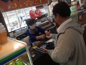 永藤牧師唐揚げですか?いいえ、ソフトです。 二号車バス組