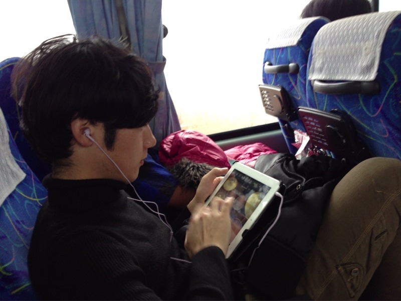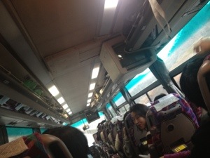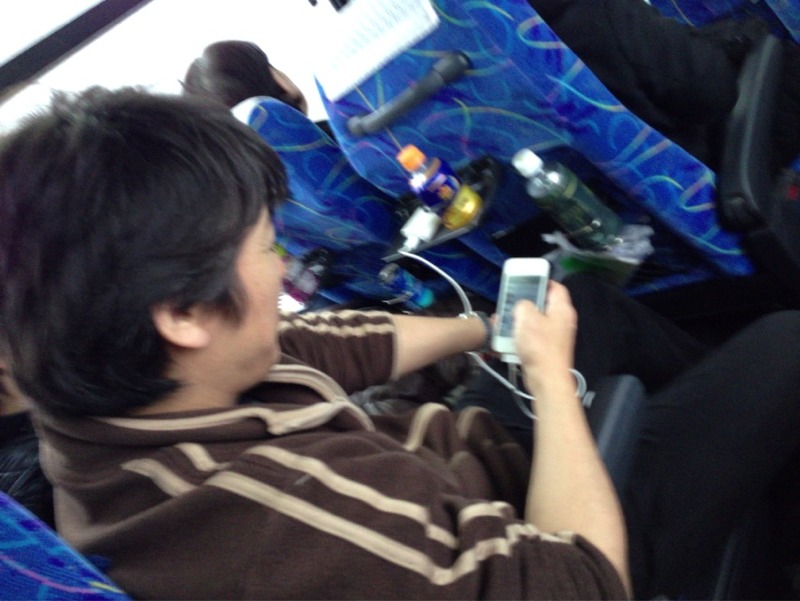 さっきのスイス村から移動して諏訪湖に着くまでは、15分か?それ位しか時間は経っていないのに、寝起きで「あれ?もうそんなに時間経ったんだあ〜!」と言う人や、「もうそろそろ2月も終わりだからね」なんていう発言があり、「大丈夫なのかぁ?」の人もいる一号車。とにかく寝ます!
