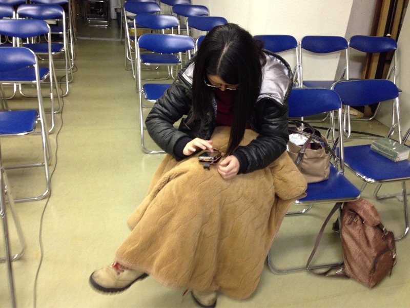 徹夜祈祷会、エアコン下に座ったり、この様に毛布かけたりして工夫して暖かくしています。 今休憩中〜