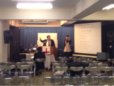 牧師賛美。今井さんがコーラスに入っています。 今日の奏楽は裕美ちゃんが助っ人に入っています。