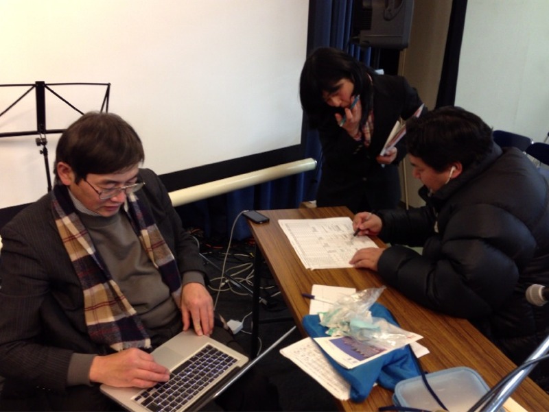 アンテオケ教会事務所に人が集中。ただいま14人が詰め寄せています。真ん中でスペースを一人じめの方が?白馬スタッフ頑張ります。