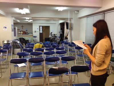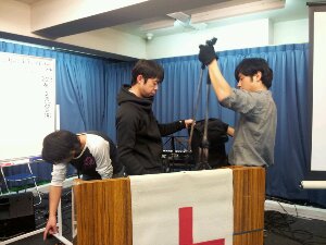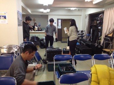 会堂では、白馬に持って行く機材の積み込み準備が始まっています。