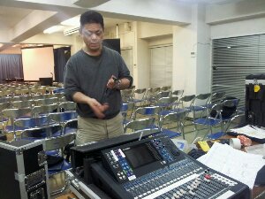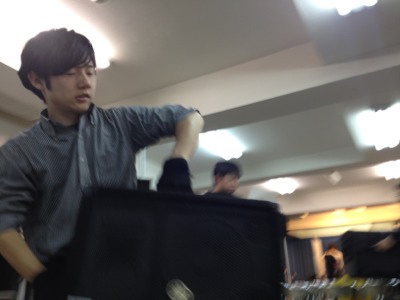 奮闘中の益川伝道師。 黙々と白馬に持っていく機材を準備中です!