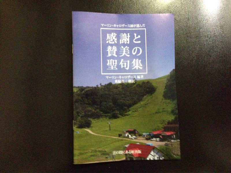 マーリン・キャロザース師が選んだ感謝と賛美の聖句集が、本日、教会事務所に届きました!ブログにすでに書きましたが、もう一度。表紙の写真は、夏の白馬です。〈正確には、白馬スネルゴイキャンプが行われる、ホテルグリーンプラザ白馬からの風景です。〉キャンプ中でのお買い上げのみ、10冊につき1冊の特別サービスありです!ぜひ、キャンプでお買い求めください。 『感謝と賛美の聖句集』。