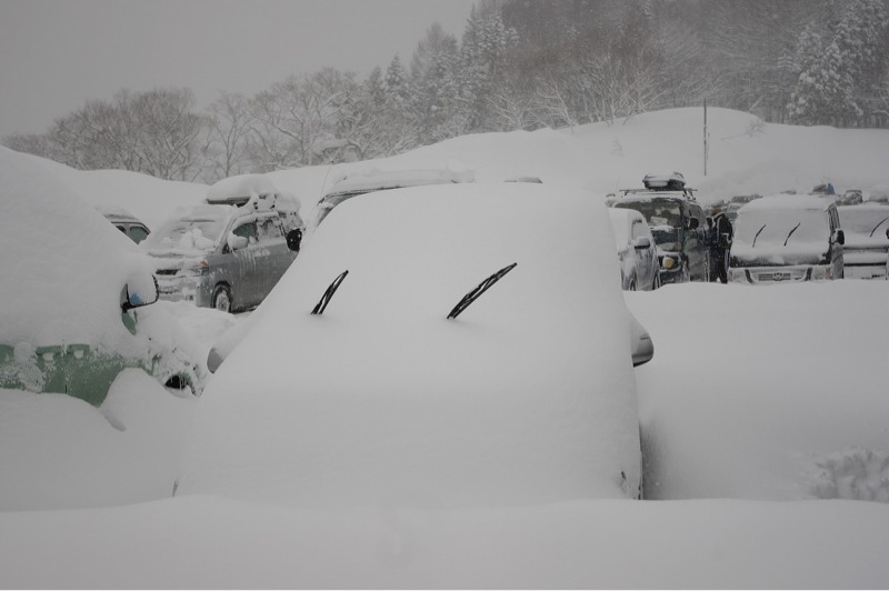 雪に埋もれた車、車、車! 私達のはどれかな~?(^_^;) 去年の白馬です。