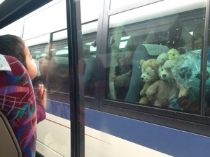 モテモテのエシュルンちゃん。 となりのバスから、人形攻撃を受けていました(^_^) 二号車バス組