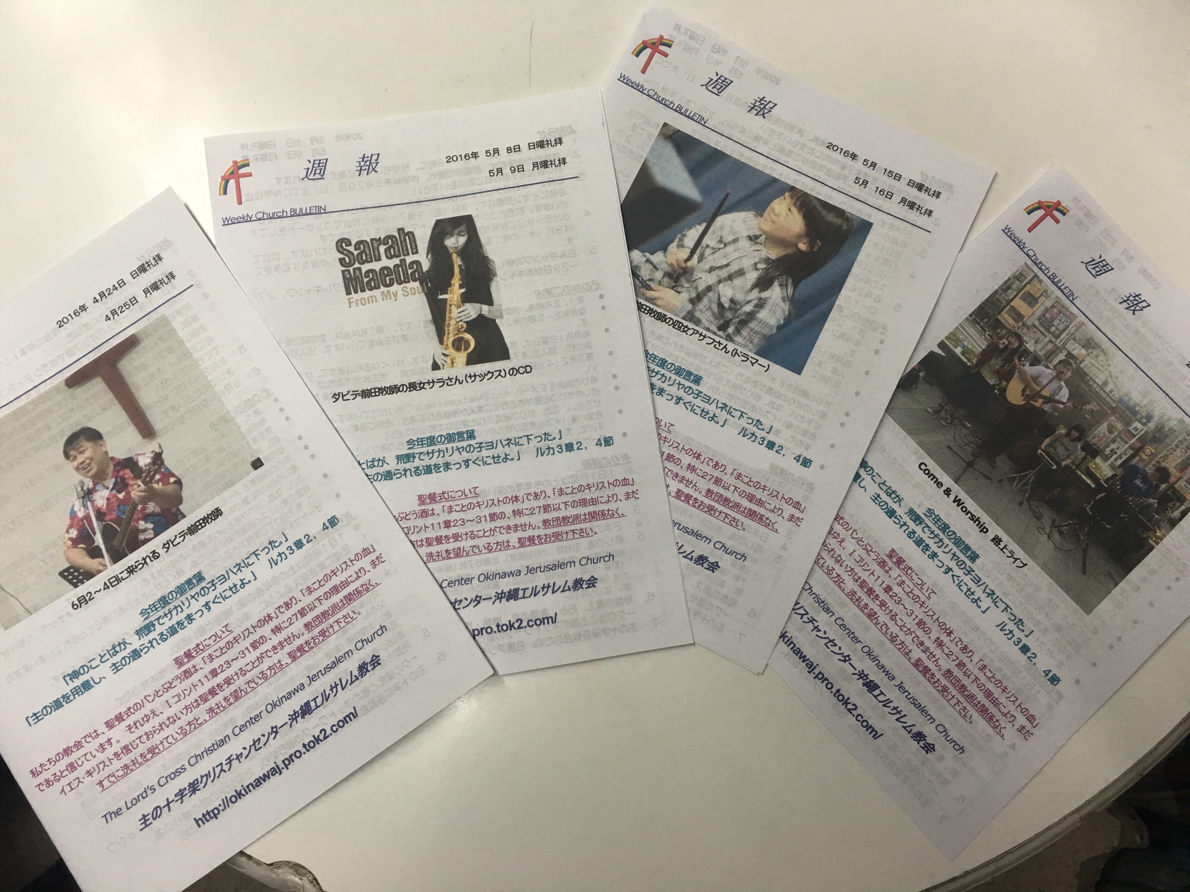 沖縄エルサレム教会の週報!ここ数週、前田ファミリーシリーズだそうです^_^