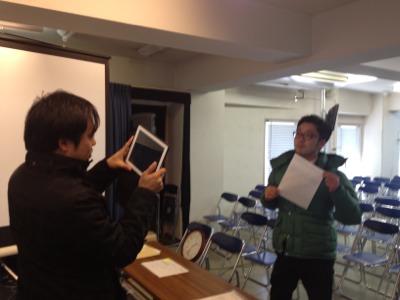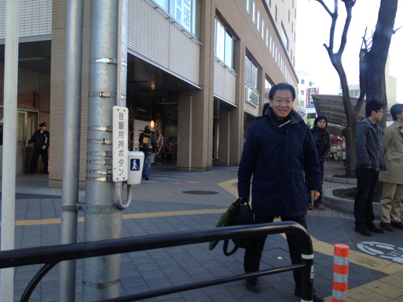 毎回のように高円寺駅で弓野牧師と合流。今日もクールに登場です。