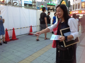 清水さん。チラシ頑張っています。