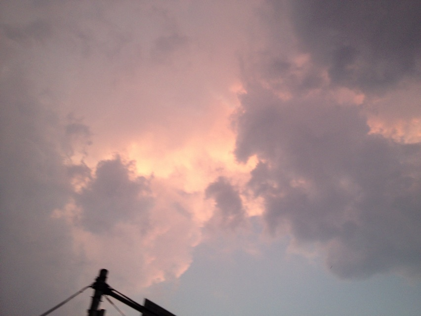 さっきまで豪雨だったのに、雲が夕焼けてます。