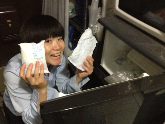 この時期恒例の冷蔵庫の霜取り。 保冷剤や氷を入れる場所を確保します。