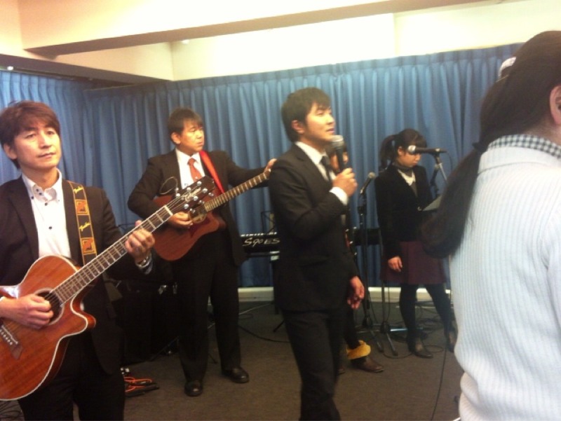 賛美がはじまりました。 導くのはヒソプの横尾さんです。 全員ヒソプのメンバーです。 予選会では、英語でも歌ってくれるのでしょうか?(ウラノスのJOY)