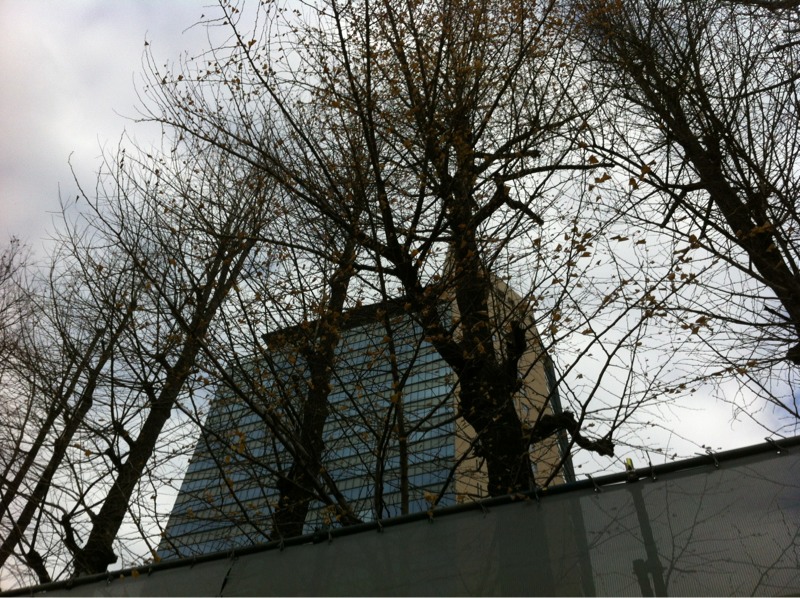 職場に行く途中、先週まであった黄色い葉がなくなってました。イチョウの木。ところが、違う通りに出たら、
