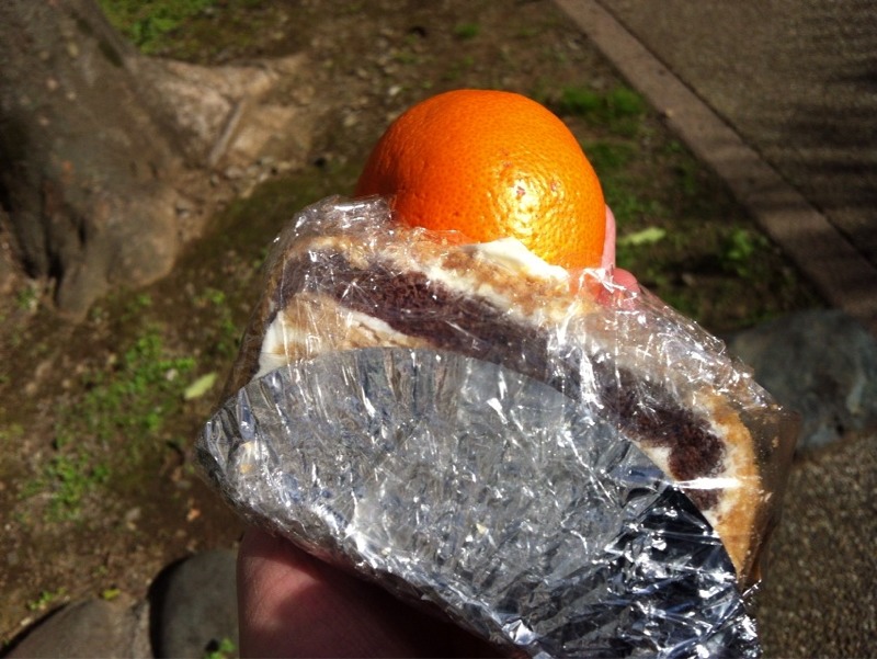 今、デザートケーキとみかんをお腹におさめるとこです。