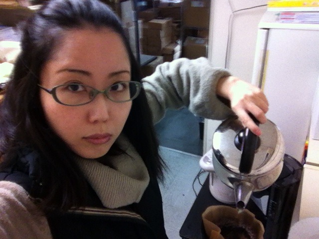 「メガネに髪が挟まって、最近イヤだ」と周りの人に言ったら、「私も!」と言う人が結構いました。髪を全部縛ると寒いので、仕方なく今日はデコ出しの髪型です。