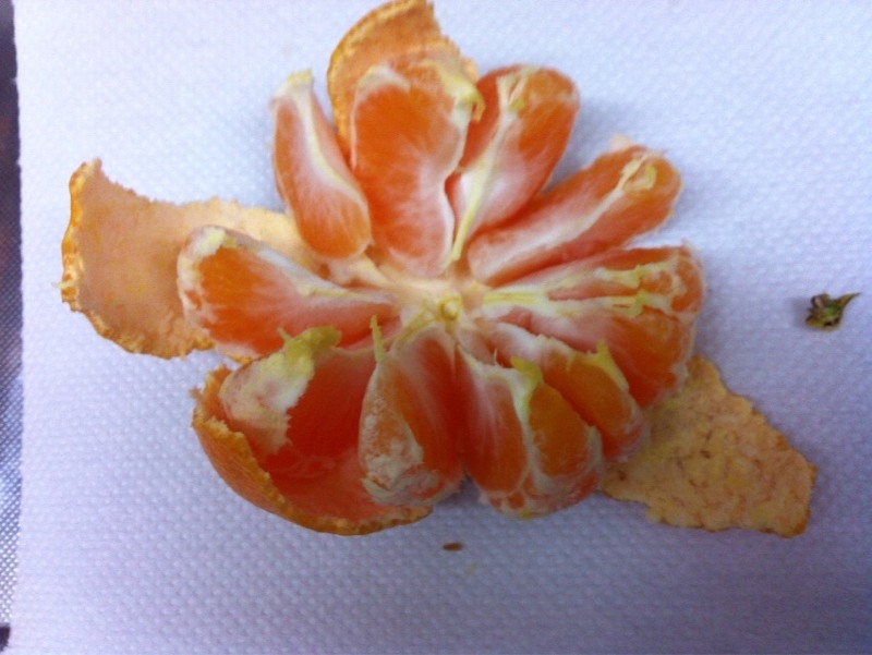 このみかんは、何個の実が入ってるか?!みかんのヘタを取って見ると、小さなプチプチが見えますが、その数が中身の数です。食べる前にこんなヒマなことは、今ではいたしませんが、今日はネタが不足のためこの一コマアップとなりました。