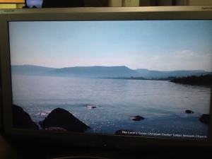 モニターにはイスラエルのガリラヤ湖の風景が! やすらぐ〜o(^_^)o