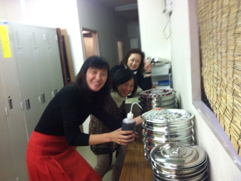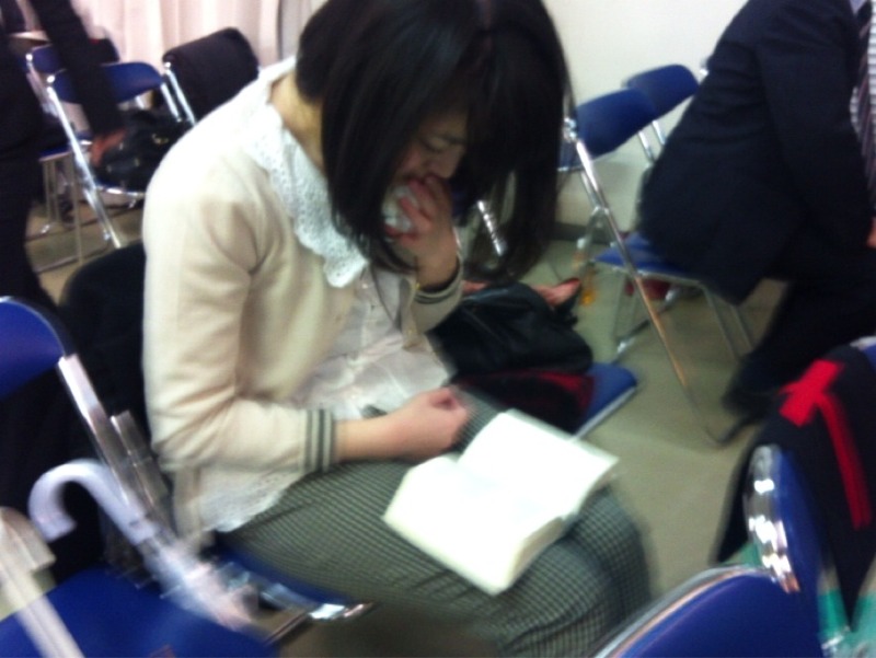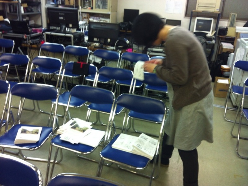 先週洗礼を受けられたTさん!今日からご奉仕の打ち合わせでしょうか。