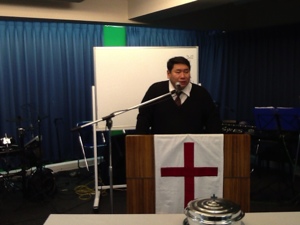 牧師賛美は 賛美リーダーがピーターさん、 奏楽がみぎわさん、 ギターがダビデくん。