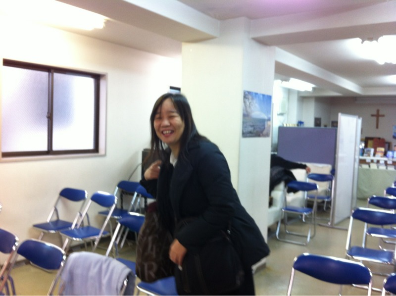 会堂で〜す。「おはようございま〜す」と、Freedomとヒソプのエステルさんです。