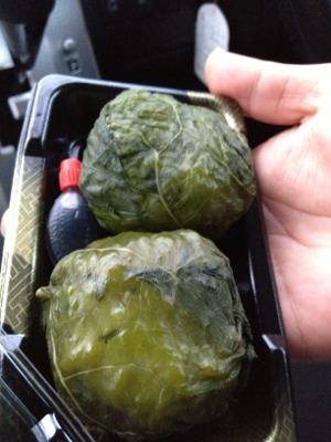 めはり寿司といお寿司を頂きました。 おにぎりみたいですが、中身はお寿司です。 本当はもう一回り大きいそうです。