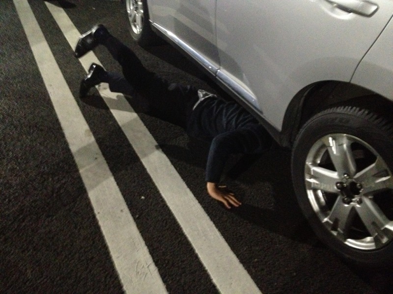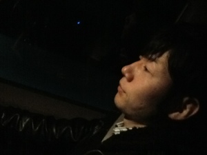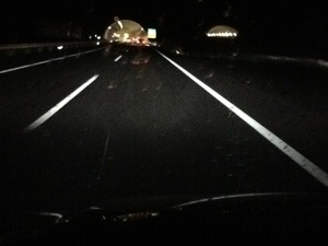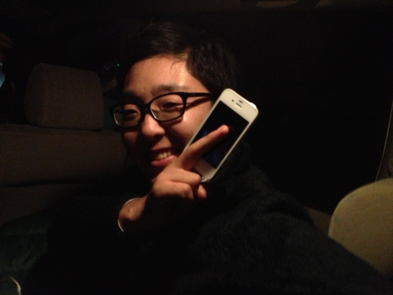 雪が降ってきた!さっき、ダビデくんに運転を交代したヒサ! 再び、運転か?