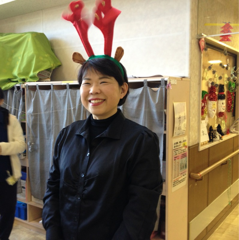 とっても素敵な笑顔です。 デイケアでは、今村牧師のパフォーマンス、大好評でした!