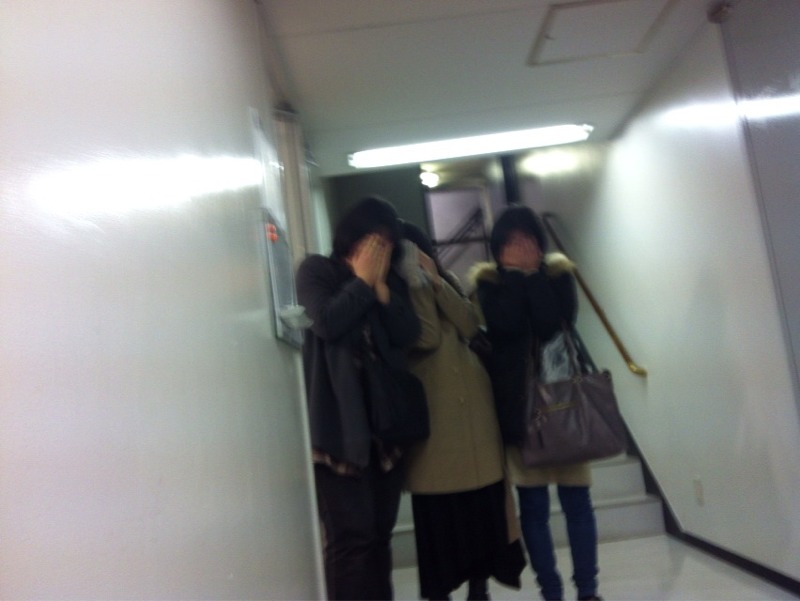 撮りま〜す!と言ったら、団子になって押し合いが始まり、ラストはこうなりました。美しくまぶしすぎるため顔を隠している、スプレンダー三姉妹。