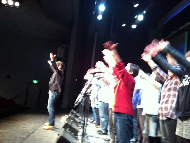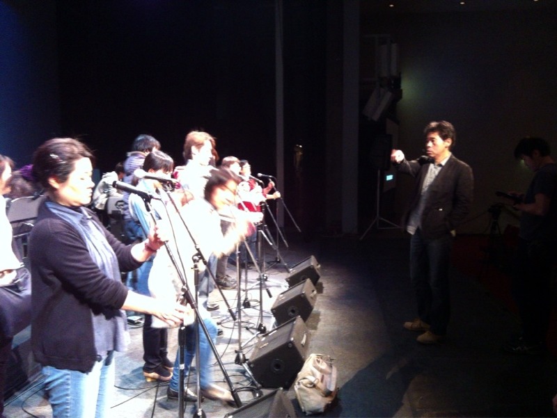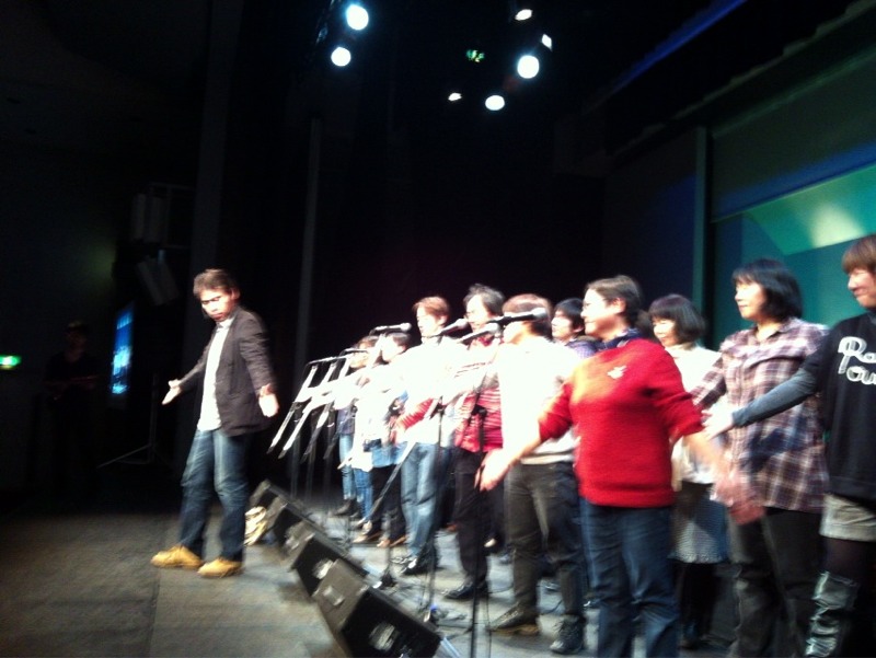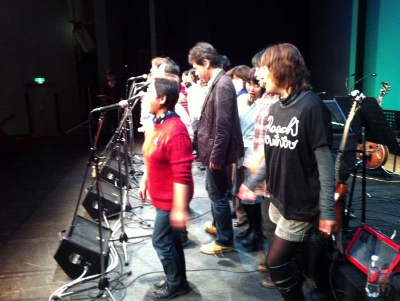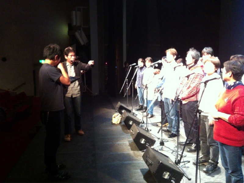 満員電車乗車みたいに森牧師、真ん中に入られました。なるほど、返しの音チェックでした。