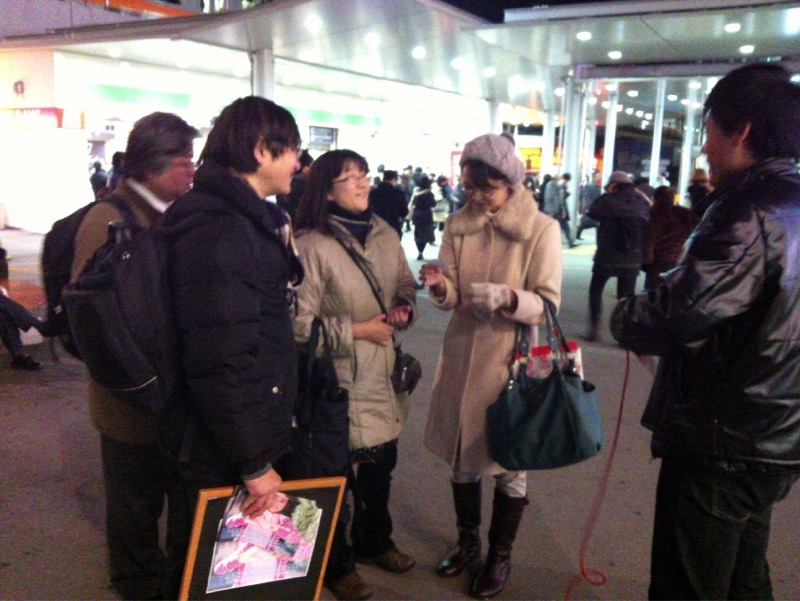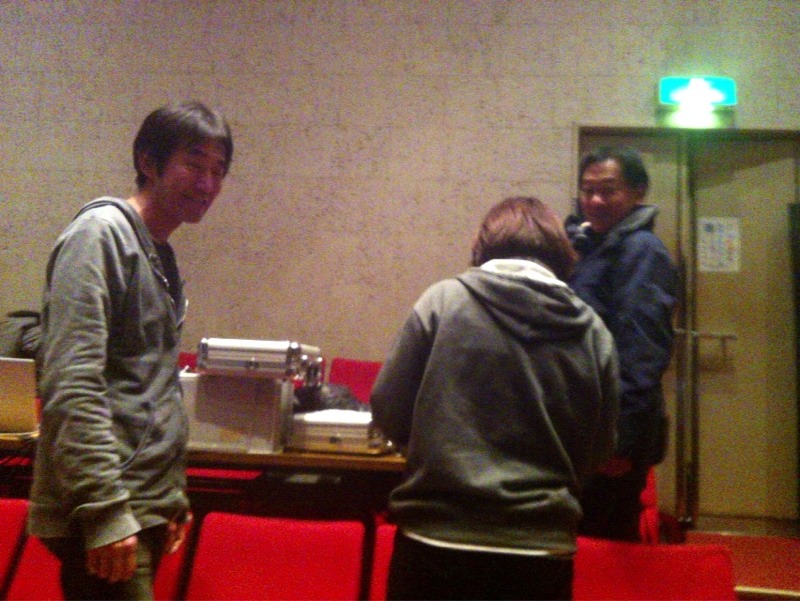 荒地に川ミュージック 弓野牧師。企画制作プロデューサー佐藤さん。後ろ姿は、アッコちゃん。