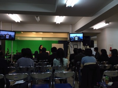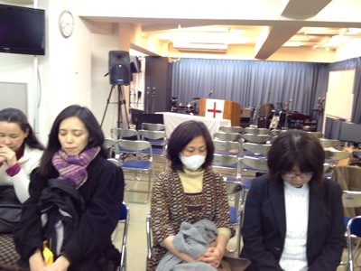 インターナショナル礼拝前の準備祈祷会。寝ていませんよ!祈ってますよ‼