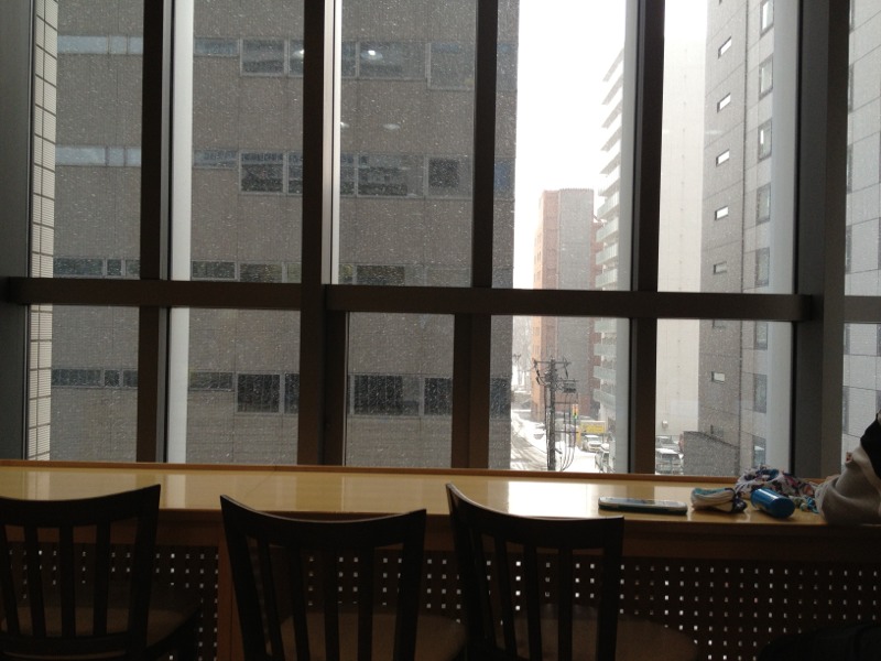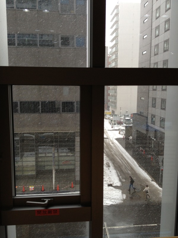 ビルから、吹雪がよく見えます。 北海道は、広い。変わりやすい気候です。