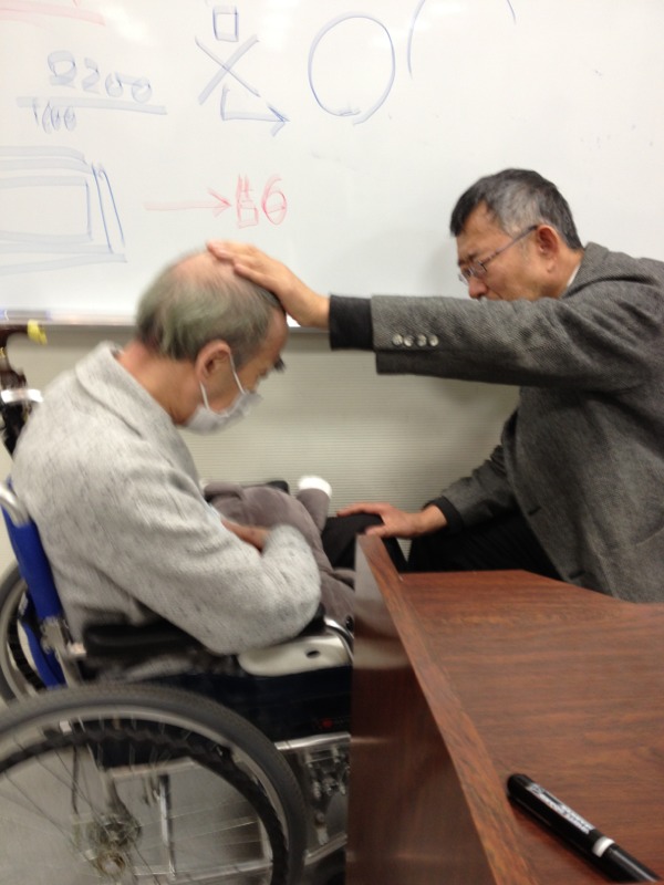 祈りを受ける菅牧師