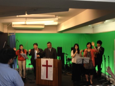 第三礼拝の後半賛美。 力強く賛美が捧げられています。