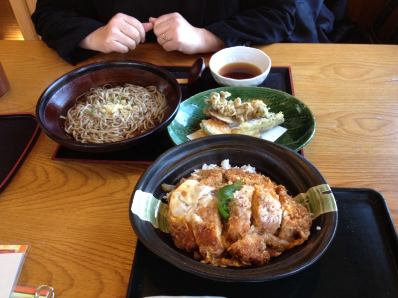やっと…きました\(^o^)/ カツ丼と野菜天蕎麦! しか~しカツ丼が、めちゃくちゃ美味しかった!ほとんどメニュー選択をはずすことない主人でした…?!あまがい