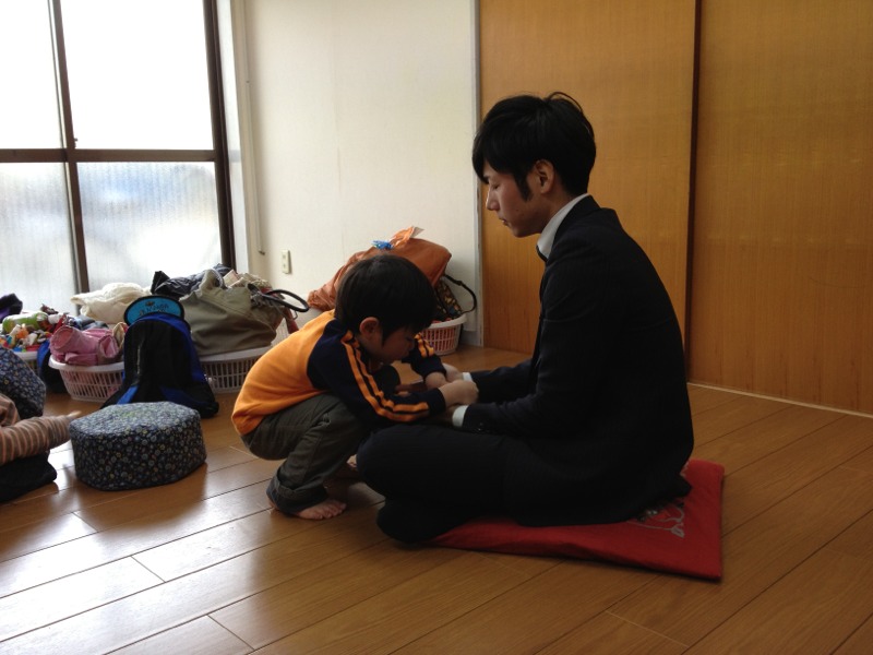 日本の児童養護施設を造る予定の場所を視察しに行って来た時の映像を、皆で見ています。 (ミカエル)
