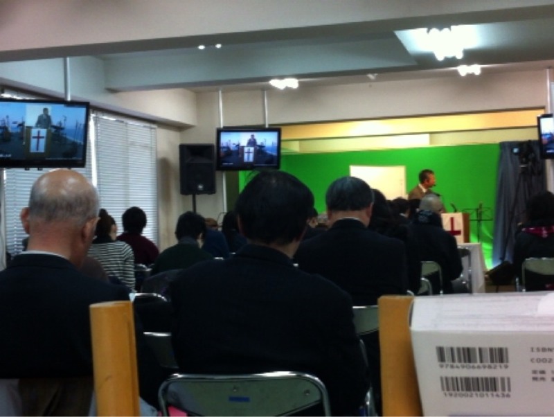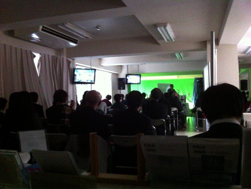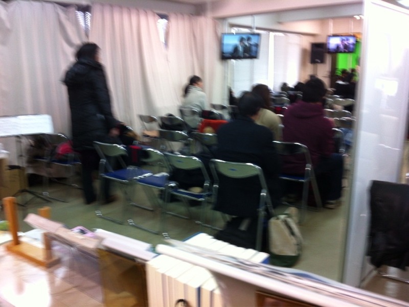 第3礼拝の時間は、路上に賛美に行く人、CSに行く人、いつも様々で、礼拝と礼拝の合間は、人の動きが激しいです。 写真は、その後の落ち着いた入口付近。 (ミカエル)